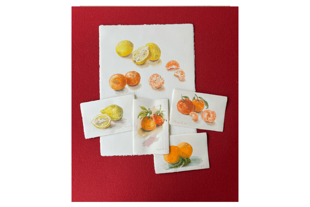 Titolo: Agrumi Tema: Illustrazioni | Tecnica: Acquarello | Anno: 2025 | Dimensioni:varie | Disponibile: Sì Dettagli